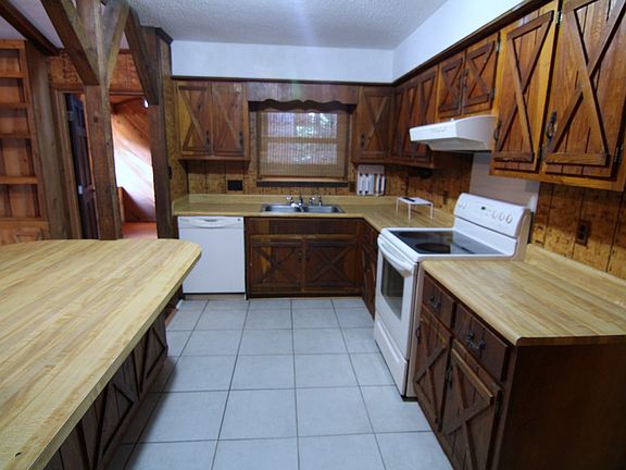 Rustic retreat in quiet cul-de-sac. Completely fenced yard with large storage building with power - used as man cave. Spacious great room with large stone fireplace as a central focal point. Open kitchen with breakfast bar and split brick floors. Laminate flooring throughout house. Only carpet is in small office/breakfast area off kitchen and master bedroom. New windows, Unique floor plan and features you won't find anywhere else. NEW ROOF added in 2017