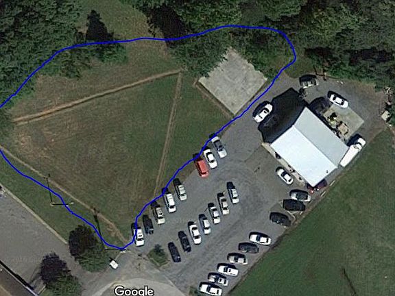 Vacant commercial land behind the car wash in Rural Hall. Large concrete pad poured to enable easy building. Beside a busy used car lot.