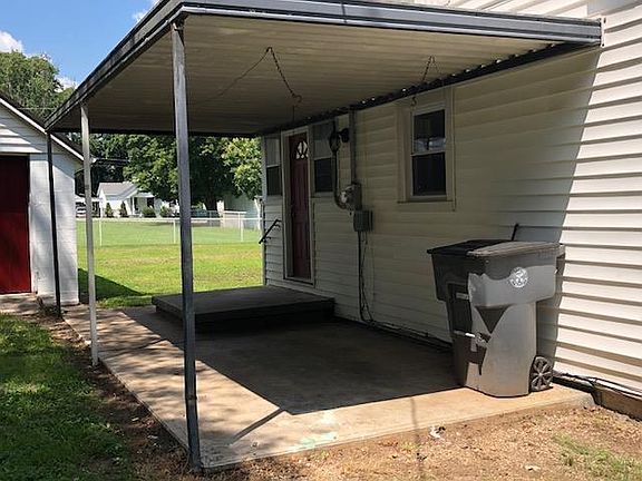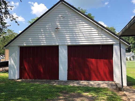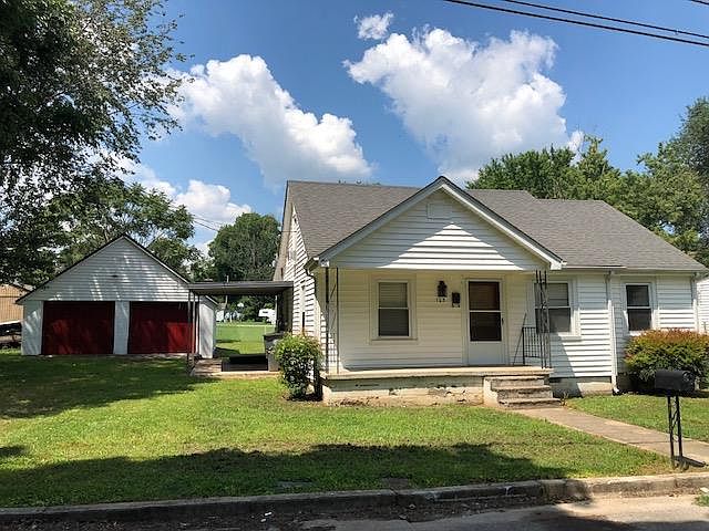Remodeled 2BR home in town on a small lot with a large detached garage. True hardwood floors. All kitchen appliances remain. 2014 HVAC & roof. Replacement windows. Tiled bathroom. Concrete storm shelter under the back porch. Covered patio. 24x24ft detached garage. 70x125' lot in town.
