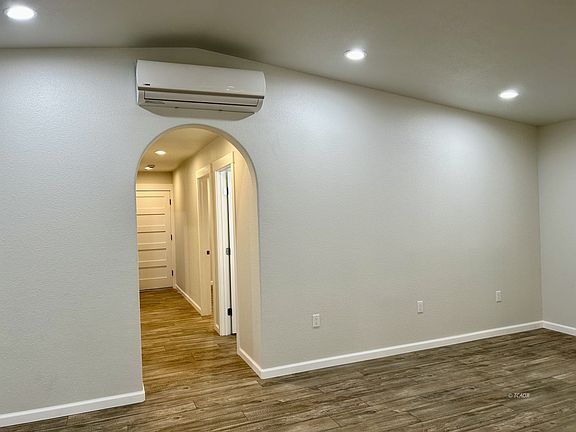 A total Remodel with In Town Services. Fire damaged the majority of the original home a few years back. Offering a fabulous opportunity for quality contractors to put their talent to work. New framing, including majority of the roof system, new roofing, new windows, new doors, new flooring, new bathrooms, new laundry room, and a custom kitchen with local cabinet maker talent. Covered front porch with stamped concrete, plus a covered deck at side, with sliding door access Mini splits; with each bedroom enjoying it's own cassette installed in the ceiling, plus a unit in main living area. Recessed lighting, plus accents of custom lighting, and a ceiling fan. Majority of home features new exterior siding, new drywall interior, new paint; inside and out. Convenient laundry room, prepared for full size washer and dryer. New attached two car garage with windows on each side. Upgrades included additional hardscape walkways and extensive fencing.Large pacel with plenty of room for a future ADU.Sellers have ' stubbed in' for future connection option. Property extends to Pine Song, affording rear drive access.