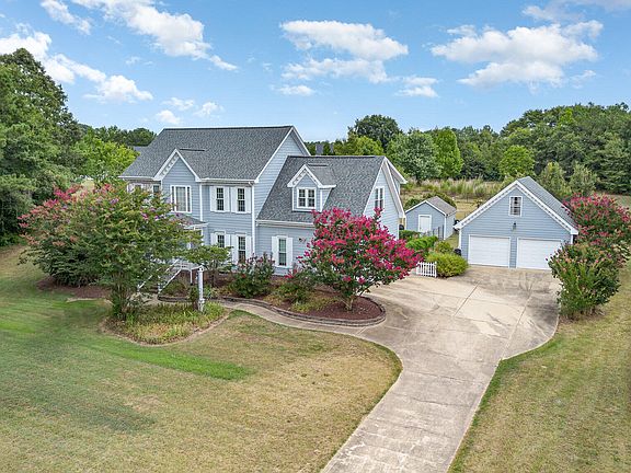 Welcome to this stunning custom-built home nestled on a sprawling 2.67-acre lot.Two-story foyer.Dining room features crown&wainscoting. Living Room has beautiful, refinished hardwoods&fireplace w/gas logs. The heart of the home is the beautifully updated kitchen, featuring modern appliances, ample granite counter space&stylish cabinetry. New double hung windows 2022. The primary suite, complete with a fully renovated primary bath with heated tile floors, zero entry shower, frameless shower doors, gorgeous free-standing tub.The hall bath also has tasteful updates The versatile bonus room has ample space and a convenient closet. The screen porch offers tranquil space. This property features a two-car attached garage and a two-car detached garage, a total of FOUR parking spaces! This detached garage has walk-up storage. Roof New in 2019. Encapsulated crawl. The expansive yard is a nature lover's paradise, adorned with fruit trees and thriving blueberry bushes, creating a serene and bountiful oasis. This lot can have a horse!