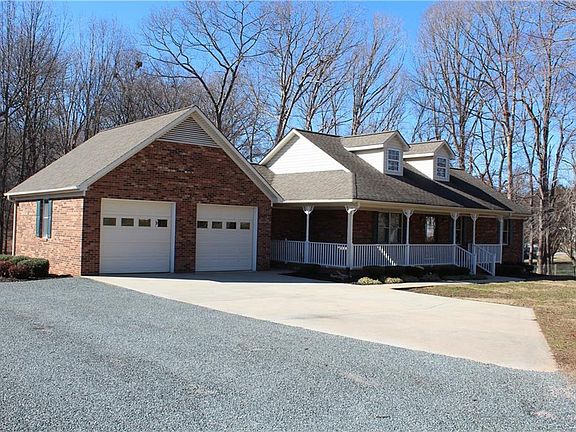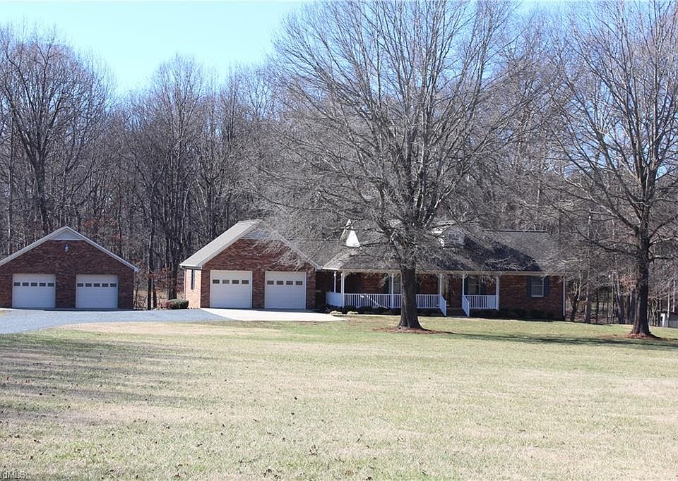 Home sweet home on 4.3 acres in West Davidson. This brick farmhouse with rocking chair front porch is ready for you to move on in. Enjoy the large front yard with mature trees and fencing on both sides to bring your animals to this property. The attached 2C 590 sq ft garage will keep you dry, as you drop your shoes in the laundry room right through the door. A small office is right off the garage. Living,dining, kitchen, 3 bedrooms and 2 baths complete the main floor. Down the stairs into the full unfinished basement, there is a gas log fireplace, also a 1/2 bath and with just a little effort you could complete the addtl kitchen, with cabinets already installed. The detached 2C 1161 sq ft garage with electricity and hot water heater will be a great addition for washing cars in the colder months. Also, floored attic space for ample storage. The long-paved drive leads to so many extras including outbuildings, a large 328 sq ft back deck and room to spread out on this property.