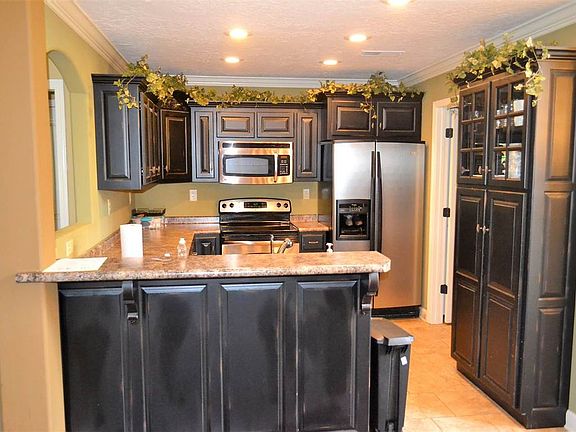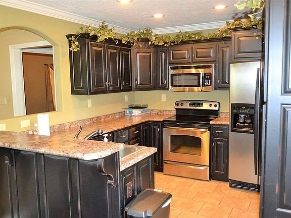 Spacious 3 bedroom 2 bath brick home in Medina with high ceilings are archways, hardwood flooring, beautiful black distressed cabinets and stainless steel appliances, lots of trim and moldings, split floor plan, covered back porch, and a privacy fenced backyard.