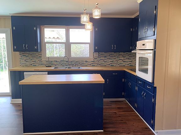 Everything is NEW again. NEW metal roof, NEW HVAC, refinished beutiful oak floors in most of the homes. Wood laminate floors in 2 bedrooms. Kitchen has custom designed colors and tile back splash that makes this kitchen look like HGTV! Wooden Butcher Block Counter Tops, new Faucet, New Lighting! Breakfast area has in wall Fireplace unit! Sliding glass doors open to the rear of the home. HUGE bathroom with tile floors, refinished pine cabinets, double sinks and shower tub combination. Master Bedroom has 1/2 bath en suite. Contemporary paint colors in all rooms and this home shines like a new penny. 100 % brick home with attached 1 car garage. No more wet groceries. Large lot has fire place/fire pit outside. Room for gardening here. Attached workshop. Call today to view and make this your home.