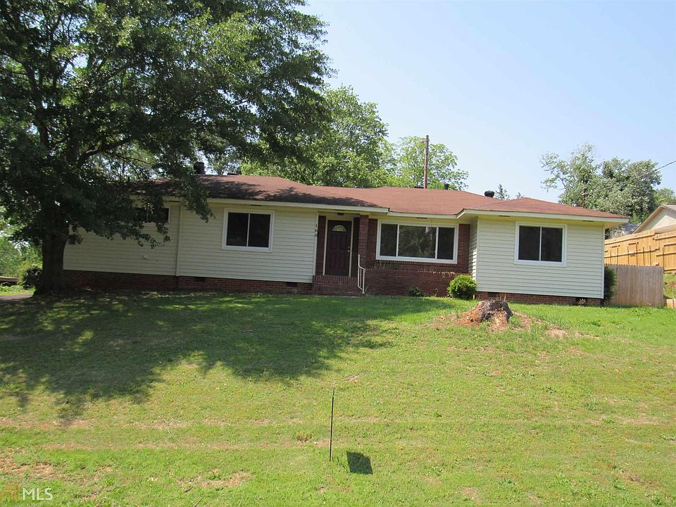 Enjoy this home's uniqueness with a very private backyard w/fence and plenty of room for outdoor entertainment. Pretty flagstone patio, and a large turn-a-round area that could be an extended patio for entertaining. Detached garage has 2 bays and separate workshop area that can be used by any craftsman/hobbyist. The home has two living areas. A nice den with fireplace and 1/2 bath with large windows looking out over the backyard. The living/dining room is huge with a view of a built-in potential flower garden. The bedrooms are large with double closets. The back entrance could be the perfect mud-room. Stove, Refrigerator, and Dishwasher remain. New paint throughout. If you've been looking for a great backyard play area for your children, this has it.