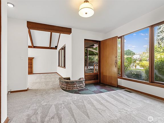 Mid-century home with fresh paint, carpet, lighting and more. With hilltop views overlooking Selah the home has spacious light-filled rooms, with a distinct living/ dining room with vaulted ceilings, wood beams, fireplace, and built-ins. Easy private deck access from kitchen and living spaces which leads further to the groomed garden pathways with mature delightful plantings. Spacious lower level family room with bathroom, storage, and outside access. A rare separate 1241 square foot studio/shop at the base of the hill with two separate walled spaces and half bath.