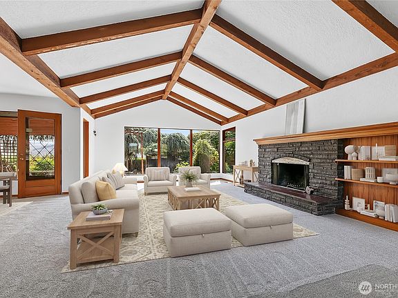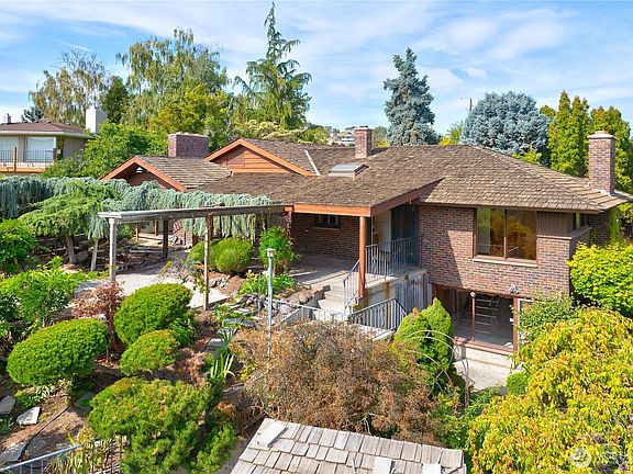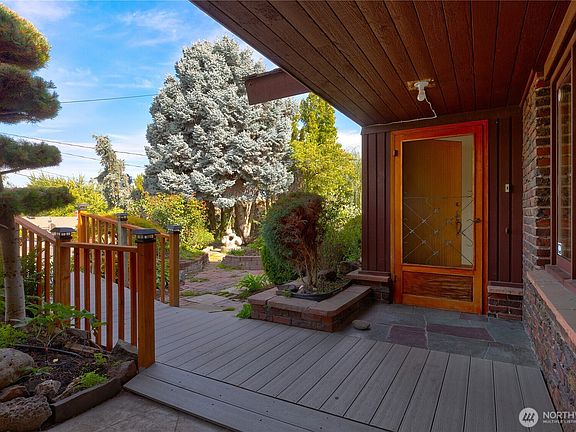 Mature delightful plantingsHilltop viewsLower level family roomSpacious light-filled roomsWood beamsGroomed garden pathwaysPrivate deck access