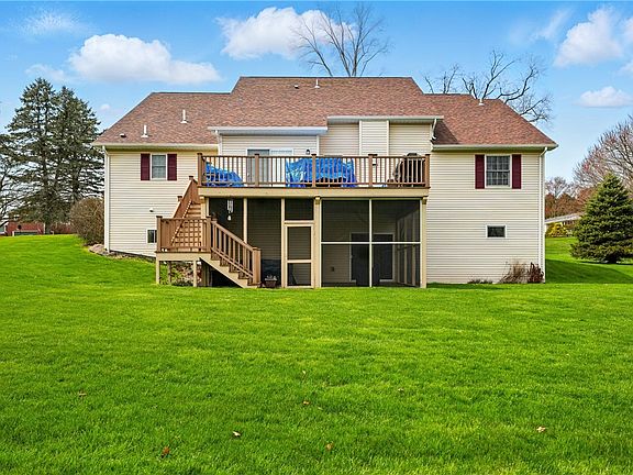 Beautiful 3 or 4-bedroom, 3-fullbath ranch home on a .59-acre lot in Penn Township, Butler County! This spacious home offers a 2-car oversized garage (23'x25'), huge deck with screened-in patio below, hot tub included! The main floor features 9' ceilings, a family room with a gas stone fireplace, open kitchen with Corian countertops, stainless appliances, breakfast bar, and breakfast room. The luxurious master suite includes a walk-in closet, ceramic tile shower, dual sinks, cultured marble counters, and ceiling speakers. Two additional bedrooms, a hall bath, dining room, and laundry complete the main level. The finished walkout basement offers a large game room, 4th bedroom with bath access, exercise room/office, and massive storage area. Mature landscaping, lush lawn, covered front porch, and proximity to Butler Country Club and the airport make this home truly special. Don’t miss out—schedule a tour today!