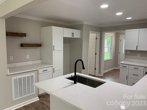 quartz countertops and lighting. This is a open floor plan with luxury vinyl plank flooring. You will love the stainless extra large sink in kitchen. Large laundry room. You will have endless hot water, tankless water heater. No HOA. Home comes with large custom deck on the rear. The primary bedroom has Barn door to the new updated bathroom. Flex space that can be office. 100% financing with USDA. Comes with award winning Clover Schools.