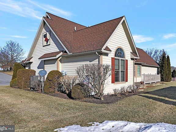 Welcome to your new home, located in the Borough of McConnellsburg. This custom-built, 3 bedrooms, 2 bath home, offers 1,365 square feet of finished living space on the main level. The open floor plan accentuates the flow of the home. The exterior of the home is covered with fiber cement siding. The professionally installed landscaping complements the exterior. The covered front porch provides a weather protective entry and seating area. When you open the front door and step into the foyer, your gaze will initially move straight ahead to the spacious 13x12 living room, which features a cathedral style ceiling, propane fireplace, ceiling fan and built-in cabinets. Hardwood flooring accents the foyer and living room. Access to the 10x22 rear patio and yard is available via the French doors on the east side of the living room. The windows on the east side of the home provide natural lighting. Turning right from the foyer, down the wood floored hallway, adjacent to the hall closet, you will notice the second and third bedrooms on the west side of the home. The second bathroom, located nearby, includes a tub shower and handicapped accessible bars. On the east side of the hallway is one access to the Primary Bathroom, featuring a handicapped accessible shower, double-sink vanity, plus the washer/dryer area. The 15x13 Primary Bedroom, also with a cathedral style ceiling, has a walk-in closet with shelving and a ceiling fan. All three bedrooms have carpet flooring. Both bathrooms are equipped with an auxiliary heat source. As you exit the north door of the Primary Bedroom, you will notice the 13x11 kitchen and 11x11 dining areas, which are also upgraded with hardwood flooring. The kitchen amenities include oak cabinets, granite counters, breakfast counter, a built-in desk area, plus recessed and track lighting. The electric stove/oven and garbage disposal were replaced in 2021, plus the microwave in 2018. Access to the 24x24 two vehicle attached garage is on this north side of the home. Pull down steps provide access to a storage space above the garage. An aluminum handicapped ramp is currently in the garage. Doors are 36" for handicapped accessibility. Additional recent replacements include the water heater in 2019, the roof in 2020, and the Air Conditioning and garbage disposal in 2021. This well-maintained home awaits its new owner. Please schedule a visit.