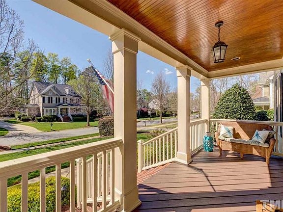 Stunning custom home w/dbl. frt. porch. 5 BR, 5 full BA, bonus room. Open flrpln w/huge family rm w/see thru fireplace, new granite, sunny breakfast nook, living/study, mud rm w/desk, guest BR on 1st fl. Lg. Owners retreat, bonus+ media/flex in fin attic, Outdoor Kitchen, patio, fire pit overlook wooded .44 acre lot! You can install a pool or join Sunset Pools & Tennis. Devils Ridge Golf Avail. Located near 540 for quick access to RDU, new shopping, & Parks. Roof/2017, HVAC 2019, New Carpet-Fresh Paint.