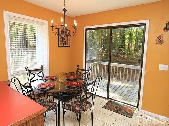 Great floor plan with three large bedrooms, a HUGE family room with vaulted ceiling, skylights and fireplace and a bright and sunny kitchen overlooking a private backyard. Excellent neighborhood close to Brier Creek has a community pool & baseball field! This 3 BR/2BA ranch sits on a .33 acre cul de sac lot. Kitchen has tile floor & newer microwave. New Carpet. New Roof. HVAC 2009. Fiber Cement Siding. Easy access to Raleigh/ Durham/ RTP and the airport! Won't last long!