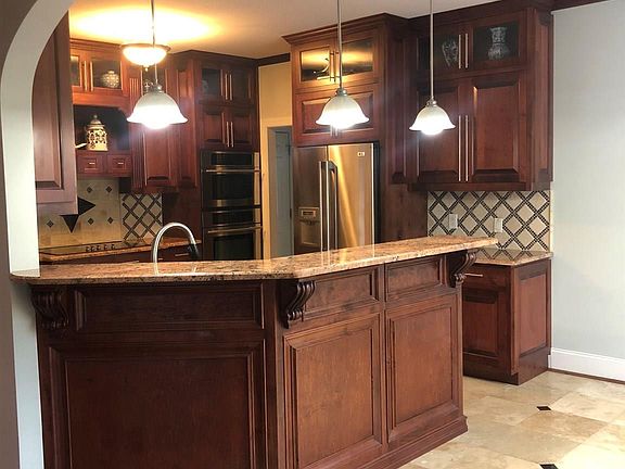 - RoomKitchenFeatures: Granite Counters, Floors-Hardwood, Cabinets-Stained, Backsplash-Tiled