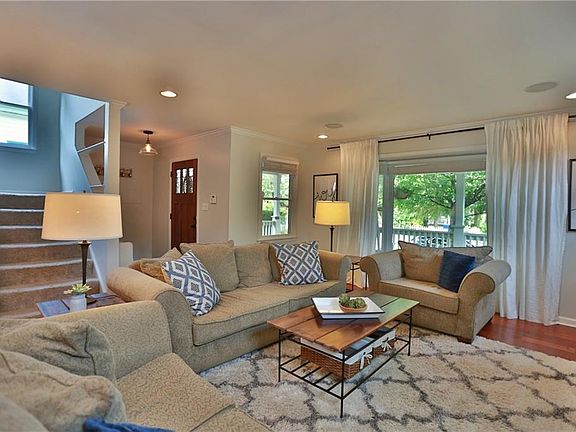 Atlanta's Hottest Neighborhood, Old Fourth Ward. Beautiful 4 bed/3 bath home walking distance to Krog Street Market, The Beltline & near Ponce City Market, Freedom Barkway, restaurants/shopping & much more. Features family/dining room combo w/ wide plank hardwood floors, gas fireplace, bay window, recessed lighting & built-in speakers. Guest bed/bath on main. Kitchen w/ stainless appliances & hardwood floors. Deck overlooking private, fenced backyard great for entertaining. Large master & renovated master bath. Huge front porch, hardi-plank siding & off street parking