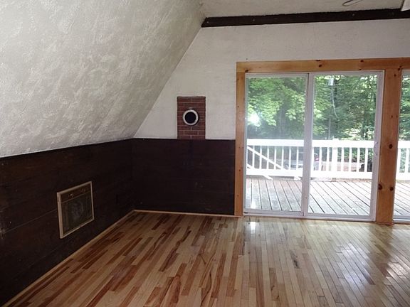 Traditional A-frame built in 1969 offers 2 bed, 1 bath, with just under 700 square feet of living space. The home sits on a large lot measuring about 0.66 acres. Inside the home features original wood flooring, large slider allowing a lot of natural light to flow through the home, and good sized bedrooms. Add a personal touch and make it your own!