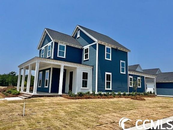 Builder is a Popular Regional Builder in North Carolina/South Carolina markets for over 30 years building Low Country/Coastal Style New Homes. Always paying attention to architectural details. Quality and Customer service is tops with this builder! Now building in SayeBrook...a new home community centrally located . SayeBrook is a master planned community near SayeBrook Shopping center, restaurants, 2 miles from ocean , near Market Common District, airport, and Murrells Inlet. Amenity Center is under construction and pool should open in August. This is the Banbury Plan with primary suite on first floor, oversized laundry room with built-in, power room, separate dining area, kitchen island, two spacious bedrooms, bath, and 15x 14 loft(bonus room) on second floor . You will love the 10 ft. ceilings in family room, kitchen and dining. 9 ft. ceilings other remaining areas. Abundance of windows in this beautiful home. Five panel doors throughout. Homesite is a corner lot, detached 2-car garage, space for outdoor living in rear and side corner of home. Beautiful designer touches. Engineered hardwood floors in main areas, tile in baths and laundry. Quartz countertops in kitchen and baths, built-in bench in laundry room , separate garden tub and tiled walk-in shower in primary bath. Lovey kitchen -open plan with large island, natural gas range, Barnett Harbor Cabinets, window above kitchen sink, lots of windows throughout home allows bright natural light. Lawn sprinkler and security systems installed. Detached 2-car garage sq. ft. is not included in total sf. .Life is good at Sayebrook. Beautiful tree-lined streets with sidewalks, parks, walking trails, lakes, under construction- community meeting house, pool, covered pavilion, playground, basketball court, pickleball court, and fire pit. Coastal, small-town charm within walking/golf cart distance to Sayebrook Town Center. A natural gas community. Come tour our staged model home and available homes for quick move-in! See onsite agent for builder promotion on these completed homes.