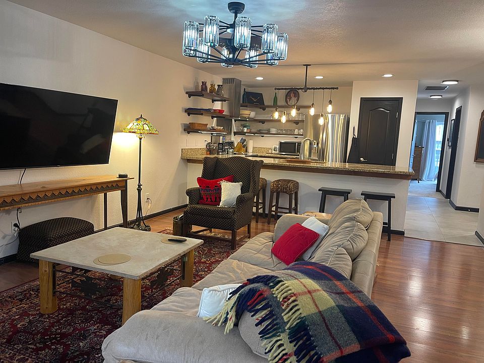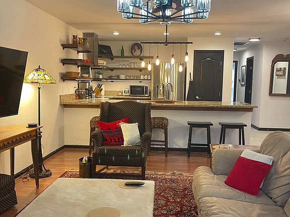 Seasonal rental in Avon within walking distance to the Westin Gondola and backing to the Eagle River. A beautiful 2 bedroom plus den or could use as a 3 bedroom with 2 full bathrooms. It is fully furnished and stocked. You will love the beautiful, open space in the kitchen and living room area with plenty of space to spread out. The finishes are tasteful and comfy. * washer /dryer * private deck * updated * fully furnished * walk to Gondola The owner is back mid April so not considering a year lease. Background and credit check are a must. Ideal lease Dec 15- April 15 Let me know your questions! The owner will be back in mid April so we aren't considering any year long leases. Ideally this is a Seasonal lease from December to April 15. We are considering 30 day + leases First, last and deposit. Background and credit check.