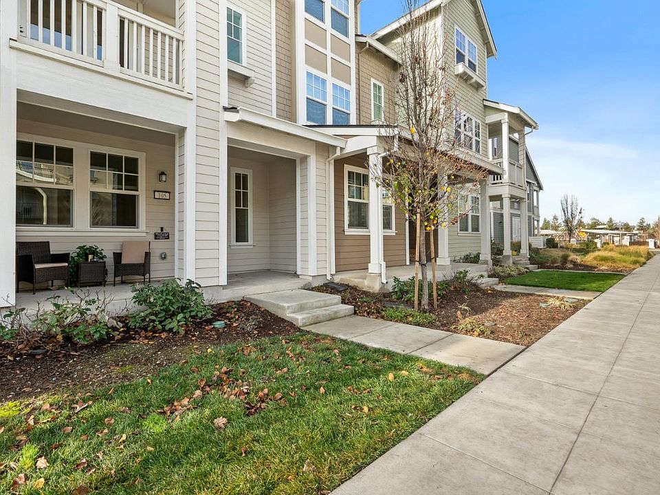 Built in 2018 by Pulte Homes, this Northeast facing Townhome has 2 bedrooms 2.5 bathrooms & a ground floor den that could serve as home office or possible 3rd bedroom. Featuring a beautiful open concept kitchen/great room with stainless appliances & custom countertops. Boasting a spacious primary suite with dual vanity & walk in closet. Efficient system upgrades including tankless water heater, central AC/heat & 240 volt EV Charger. Airy 9' ceilings throughout & multiple balcony areas with the best views in the complex. Ample storage with closets, cabinets & attached 2 car garage. Excellent central location near top tech employers, Pyramid Park, VTA Light Rail, shopping, dining, and popular downtown Mountain View.