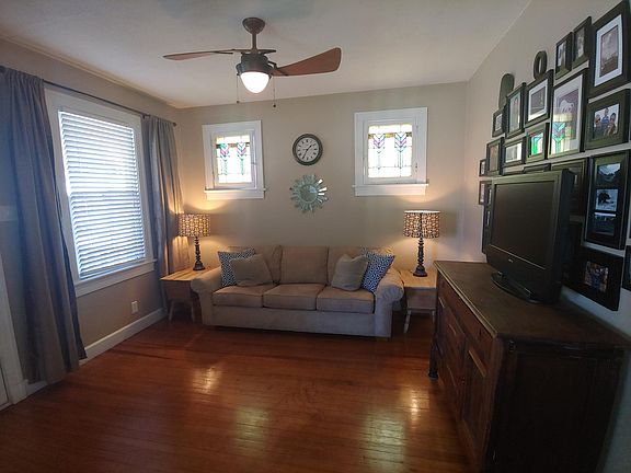 Adorable 2 bed, 1 bath home right off the bike trail. It is a short walk to Belleville's metro station, historic downtown main street shops and restaurants. It is just a short 13 minute drive to Scott Air Force Base. The home has beautiful hardwood floors, stain glass windows and a kitchen filled with quartz counter tops. A set of double doors lead you to a backyard oasis with a large porch, pergola, patio and garden. Just past that is a small shed and two car covered parking. A finished basement provides endless options for a rec room and office. Pet friendly a doggie door leads to the fenced in backyard and a cat door leads to the basement. It's a must see! Prospective resident should have good credit, employment and tenant history. Credit, criminal, and eviction background checks are required for an occupancy permit in Belleville One month security deposit and payments are due on the first of each month. $100 monthly fee for up to two pets (small/medium dog or cat). Tenant is responsible for yard maintenance, water, sewer, electric/gas and renters insurance. Available October 1st 2019