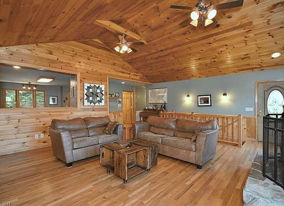 *Huge reduction* Owner transferred! Year-round views in this huge 3 bedroom 4.5 bath home. Open floor plan, great stone fireplace & decks galore to enjoy the view. Main level has 3 bedrooms & each has their own private bath + there is a powder room for guests. Downstairs could be the best man cave ever or another living quarters for guests or relatives. Wood floors, metal roof, home warranty, 2 car garage & almost one acre of beautiful flora are just some of the advantages of this great home.