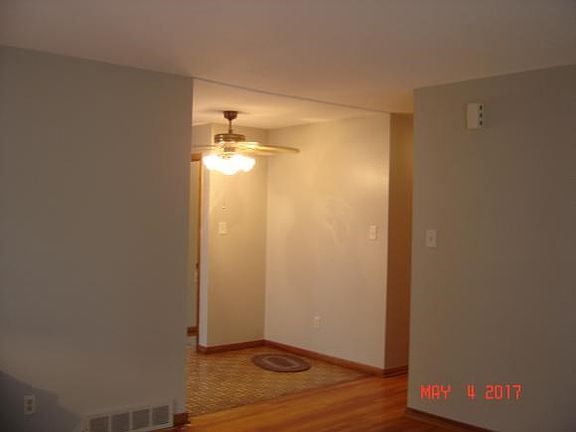 Great starter home in great condition. Fresh paint thru out,including full basement that has been waterproofed, and is partially finished. Hardwood floors in like new condition. Kitchen has been updated, gas stove and a built in oven. All appliances stay including washer and dryer in basement.Whole house fan. Roof aprox 2 yrs. 1.5 car detached garage with new door and opener. Fresh concrete patio for backyard entertaining. Flowering trees in back yard. Seller reserves some peonies.