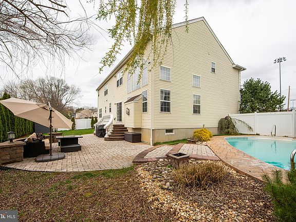 105 Jakes Way, Feasterville, Timeless Elegance Meets Modern Comfort. Nestled on a quiet cul-de-sac in a highly sought-after Feasterville neighborhood, this beautifully maintained 4-bedroom, 2.5-bath home immediately captivates with its classic façade, lush landscaping, and pristine curb appeal. The fully fenced backyard is a private oasis featuring a saltwater pool surrounded by elegant pavers—perfect for summer gatherings and entertaining guests in style. Step through the grand entrance into a stunning two-story foyer with a dramatic natural stone floor and a curved staircase that adds a touch of sophistication and timeless elegance. The open and airy main level boasts rich hardwood flooring, recessed lighting, and a flowing floor plan ideal for daily living and entertaining. A formal living and dining room leads into the heart of the home—an expansive gourmet kitchen equipped with stainless steel appliances, ample cabinetry, and generous counter space that opens to a cozy family room with a fireplace. Upstairs, the luxurious primary suite features a cathedral ceiling and a spa-inspired en suite bath adorned with real stone, jacuzzi, and separate shower. Three additional generously sized bedrooms share a beautifully appointed full guest bathroom, providing ample space and comfort for family or visitors. The fully finished basement is a versatile retreat with rich wood-look flooring, custom lighting, and multiple living zones—perfect for a home gym, media area, playroom, or home office. There's ample space to relax, work, or entertain, all in a thoughtfully designed layout that maximizes functionality. An attached two-car garage and oversized driveway add convenience, while the prime location places you just minutes from top-rated schools, shopping, dining, and major commuter routes. This move-in-ready gem offers inside and out luxury, space, and style. Schedule your private tour today and experience the best of suburban living!
