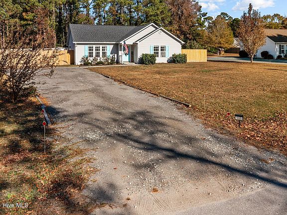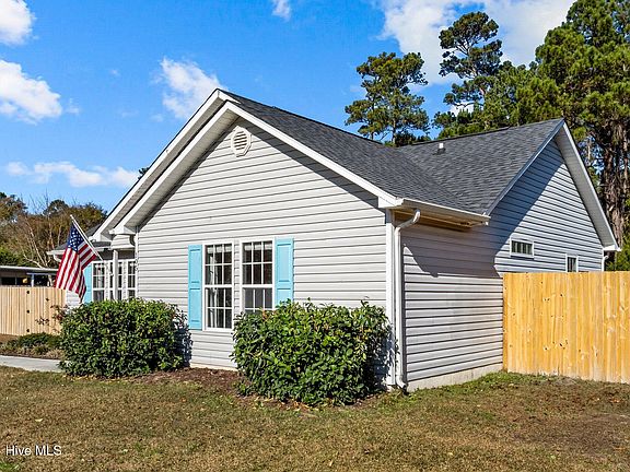 Welcome to 105 Jordan Lane! This is a great one-story home with 3 bedrooms, 2 full bathrooms, boasting 1,275 sqft of living space, and sits on close to half an acre lot! This home is completely move-in ready; a new roof was installed in 2019, and the HVAC was just replaced in 2022; all appliances are included, and furniture is negotiable. Outside you will find a new privacy fence, storage shed, patio, and plenty of room for entertainment. This home is only 3 miles from the beach and conveniently located to grocery shopping, dining, entertainment, and sits on a quiet neighborhood street with no HOA fees. Currently being used as a short-term rental, this house is great whether you are looking to live here full-time, use it as a second home, or as an investment property.