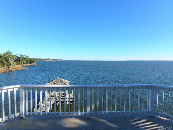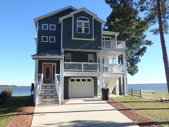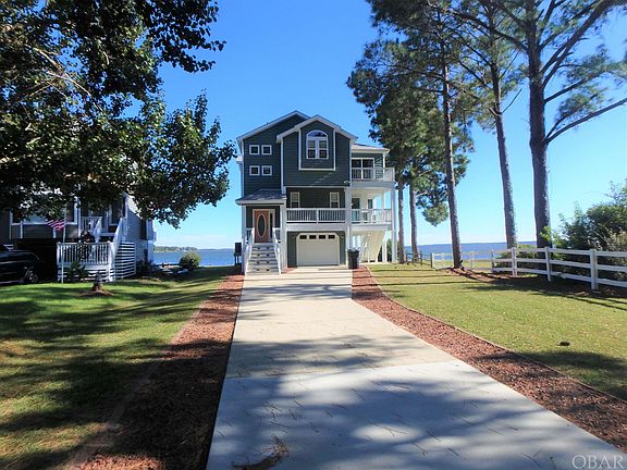 VIEWS, VIEWS, VIEWS! This updated and refreshed soundfront home in Colington Harbor offers some of the BEST sweeping sound views of the Albemarle Sound looking towards Roanoke Island. The top level features a comfortable great room with elegant column details and gas fireplace, open sitting area, spacious dining room, and chef inspired kitchen with custom cabinetry, pantry, separate prep sink, gas range, eat-at bar, and beverage center. This level also provides an oversized primary suite with private bath, double vanities, quartz countertops, jacuzzi tub and custom tile shower with dual shower heads. Spend hours relaxing and enjoying the coastal breezes from the top level, tile sun deck. The mid-level offers a private bedroom with ensuite, two additional bedrooms with jack and jill style bath, and an enclosed wraparound porch that can serve as an additional flex space! The ground level provides a bonus room, one car garage and storage room. The rear covered patio is the perfect spot to catch the breathtaking sunsets over the Albemarle Sound, complete with an outside shower. This bulkhead lot also offers a pier with covered gazebo and plenty of area to tie up your boat! The recent updates include new paint inside and out, refinished hardwood floors, new lighting, quartz countertops in all baths along with new faucets and refreshed landscaping. Don’t miss your opportunity to own a beautifully updated, sound front home with unprecedented views!