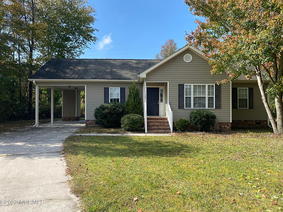 The perfect cozy 3 bedroom, 2 bath Ranch home at the end of the cul-de-sac on almost an acre of land. Features spacious living room w/new carpet, Kitchen w/new vinyl flooring, and dining area that overlooks the back deck. Has a split floor plan w/large Master bedroom w/new carpet, Full bath on one side and the other 2 bedrooms and Full bath on the other side of the house. Enjoy your backyard while entertaining friends/family on your new back deck. Also has a large floored attic space for plenty of storage. Ready for you to move in today!