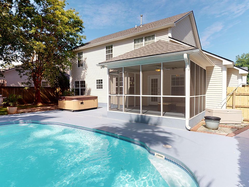 CASUAL POOLSIDE LIVING...can be yours to enjoy in this beautifully renovated 4bd/2.5ba home with pool and screened porch. Upon arrival, notice plenty of room to park 6 vehicles & the new hurricane rated garage door. Step inside (pls put on shoe booties inside the door) onto new Acacia hardwood flooring on the main level, where you'll also find fresh paint and new fans w/light kits throughout. Living/Dining combo area on your right and straight ahead past the updated half bath with new pedestal sink, you'll arrive into the kitchen/family room. New granite kitchen countertops & Carrara marble backsplash recently installed; all appliances are less than 2 years old. Generous FR offers a cozy fireplace. (see more...) Outside screen patio and large backyard are designed for entertaining, the pool deck was recently resurfaced. Head upstairs onto the new carpet you will find the owner's suite plus three additional bedrooms that share a full bath. Both full baths were recently outfitted with furniture grade granite countertop vanities with soft close drawers and Acacia flooring. Additional upgrades include: roof < 2 years old with energy efficient foam deck insulation in both attics; tankless water heater < 2 years old and energy efficient window coating throughout. Please take a look at the Matterport 360* tour and then call your real estate professional today for a personal tour. This home is meant to be enjoyed during the heat of the 2020 Summer and will not last long!