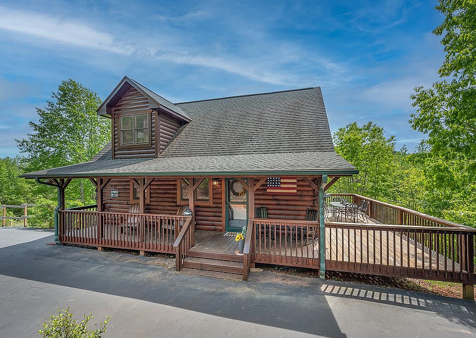 Our cabin comes with a paved driveway, flower beds and trees everywhere. Last cabin in gated community. Can you say Peace and Quiet!!