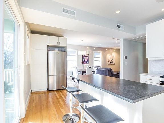 Modern sun filled 3 BR, 2 Full BA Penthouse Duplex boasting 1,546 sq.ft on 2 luxurious living levels plus a private deck! Desirable open flr plan concept for kitchen, living & dining! Living feature tons of windows that allows for incredible sunshine, hardwoods though out, IPOD docking station & ceiling speakers! The LR opens to a gracious dining area perfect for entertaining! The kitchen offers w/white cabinetry, carrera marble counters, gas cooking, SS appliances & slider to private deck! A spa-like full bath, full size stackable W/D & 2 generously proportioned bedrooms complete this living level! The top flr offers a MB suite which can accommodate a King size bed, tons of closet space, & a breath-taking master bath w/a riverstone tiled shower, jacuzzi tub, His & Her vanities! A must see!