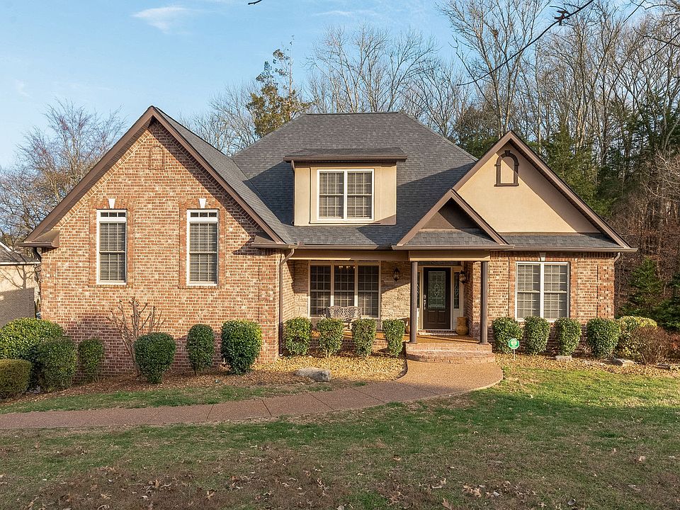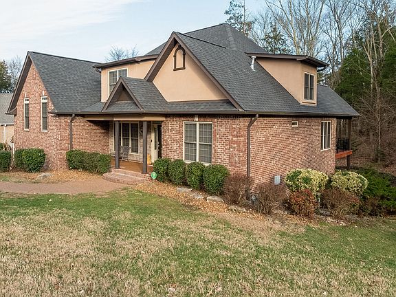 Open floor plan with soaring ceilings beautiful hardwood floors, tile and some carpet/ 2 bedrooms down and 2 baths/few steps up to rec room with half bath/ covered porch and additional porch in back/fireplace with gas logs/tile back splash and granite/stainless steel appliances/ lots of cabinets/4 car garage/ full unfinished basement underneath with lots of expansion/ eat in kitchen plus formal dinning room open to living room with fireplace/downstairs has plumbing roughed in/ trees