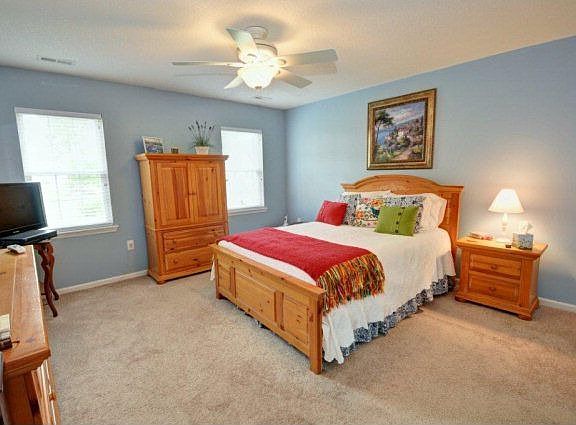 This ranch house is better than New with 3 bedrooms & Finished Room over garage. Large lot with beautiful landscaping, established grass, herb & vegetable garden. Beautifully appointed split floor plan with multiple upgrades! Laundry room. Oversize Garage 440sqft.with opener, Master with walk-in,spacious whirlpool. Raised panel doors. Five paddle fans, Gas logs/custom mantel, smooth top stove, glass/screen front door. Upgraded chandelier & countertops. Private Dining area & breakfast nook. Microwave over stove. Seller pays $3,000 in closing cost!