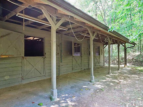 Bring horses home near town/work! Spacious farmhouse on 8.54 rare acres 15 min from UNC & 20 from RTP, close to 40 and 54, & nestled into protected lands with equestrian trails being built. Hike to Jordan Lake to kayak & hot tub on grand back deck. Enjoy family room with floor2ceiling windows. Four bedrooms plus bonus room w/closet. Two outbuildings for parking/storage & lovely wooden barn w/three stalls & tack/feed room. Large picturesque pasture, medium pasture level for riding, & small round pen.