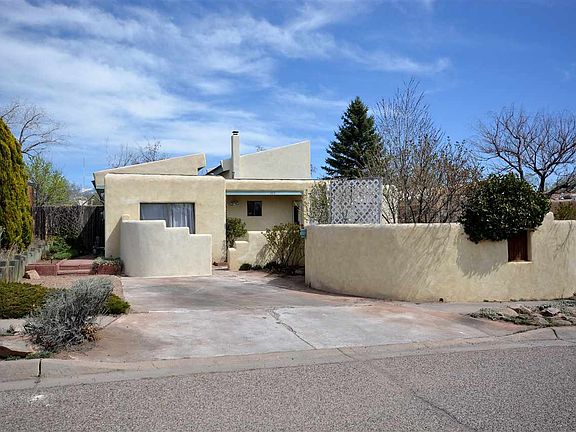 This home is everything Santa Fe! Former model home for the neighborhood, this wonderful, Santa Fe style house has been enlarged and improved over the years to include an attached guest casita or possible master suite and many other spaces that can be used in a variety of ways. Magnificent views grace the upstairs loft and light radiates throughout the house. Originally built as a passive solar home, the trombe wall on the south side holds the heat in the winter and enhances cooling in the summer. All of the house, except the loft, is on a single level and while there are three definite bedrooms, there are also a couple of possible office spaces in addition to the loft. Inside the walled yard, mature landscaping creates beauty, peace and privacy.The Seller has lovingly maintained this home and made many improvements such as a $6000. drainage system in the back yard with French drains to route water away from the house, rain barrels under the canales, and a covered pergola in the back yard. This home is located only 1.5 miles from St Francis Drive and a very short walk to the Santa Fe River trail for a quick bike ride into town or a leisurely stroll along the river.