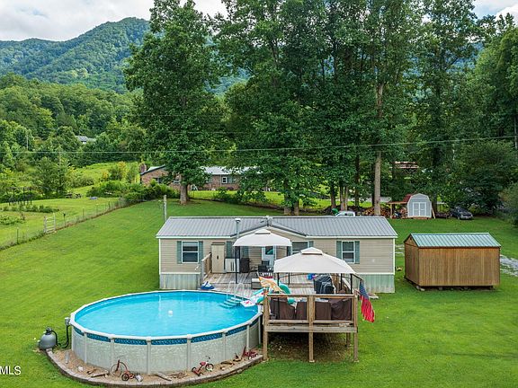 Possibilities are endless with this beautifully remodeled doublewide sitting on 3.58 acres of unrestricted mostly cleared land. Plenty of space to build home at top of ridge. Views of both foothills and Parkway. 27 ft round above ground pool just 4 years old. Covered front porch is perfect for relaxing. Back deck around pool has 2 attached canopy coverings for shade while lounging by the pool. 2 sheds remain with property. Peaceful side of Smokies yet convenient to Maryville.