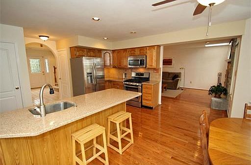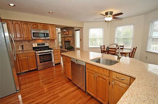 Beautiful younger 4 BR, 3.5 bath colonial w/huge updated eat-in kitchen featuring oak cabinets, SS appliances, Silestone counters & breakfast bar. Large rooms thruout. Wood floors on most of 1st level. Nice sized backyard & lighted deck. Fireplace & skylights in FR. Finished basement w/gorgeous full bath. Pool table, too!