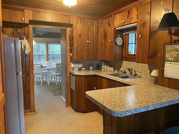 Higgins Lake views from every room in this 2 bedroom, 1 bath home sitting on a double corner lot. Very well kept and in move in condition. Attached 1 car garage and detached 2.5 car garage. Beautiful location with walking easement to Higgins Lake dock included with the sale of the home, you have to apply to the township for a permit to put the dock in. No overnight mooring. Mostly furnished!