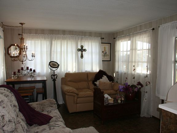 Charming VERY affordable furnished home now available at Two Rivers community where the Manatee River and Bradenton rivers meet! A boat slip is available for a one time fee of only ten dollars. The lower lot rent includes water, lawn, and trash pick up. Two Rivers has a clubhouse, pool, and lots of planned events. Interior: This one bedroom/bath have all you will need! The kitchen includes a stove, & newer refrigerator. A new chandelier hangs over the table set. A electric fireplace and working a/c wall unit are in the den area. New flooring and ceiling throughout the home. A ADT security system has been installed. The master bedroom easily fits a queen size bed (11X15) and has a overhead fan, working a/c wall unit and a electric fireplace. Two larger closets and additional linen closet are in the master bedroom. Home Exterior: This home has lots of beautiful plants and curb appeal! Relax under the covered patio area and enjoy the water's breeze. A shed outside houses the washer/dryer and adds additional storage space. A small yard is located behind the home. Come live the Florida Dream. All Florida Mobile Home Sales All listing information is deemed reliable but not guaranteed and should be independently verified through personal inspection by appropriate professionals. All Florida Mobile Home Sales Inc. cannot guarantee or warrant the accuracy of this information or condition of this property. The buyer assumes full responsibility for obtaining all current rates of lot rent, fees, and pass-on costs. Additionally, the buyer is responsible for obtaining all rules, regulations, pet policies, etc., associated with the community, park, or home from the community/park manager. All Florida Mobile Home Sales Inc is not responsible for quoting of said fees or policies." Local Financing. Terms depend on credit, etc.