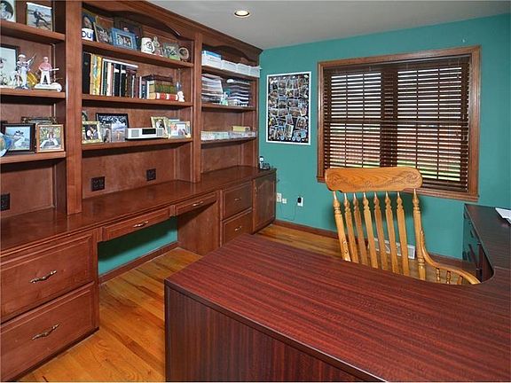 Stately brick home that has been lovingly maintained with over 3,000 sq ft + a finished lower level that could be be in-law suite! Situated on a beautiful cul de sac lot it has a wonderful oversized deck with seasonal canvas awning where you can relax with the upcoming weather as you sit by the tranquil waterfall! The cozy Family Room has a floor to ceiling fireplace with intricate brick work and built in cabinetry as does the adjoining den that is ideal for your home office. The kitchen has newer cabinets, corian counters and a huge panty wall with pull out shelving. The upper level provides 4 generous bedrooms including a princess ensuite, 3 baths and a convenient laundry room. There are 2 attached garages and 1 integral (with separate driveway) all with newer carriage style garage doors! The lower level has a large "L" game room, full bath and a another finished room.