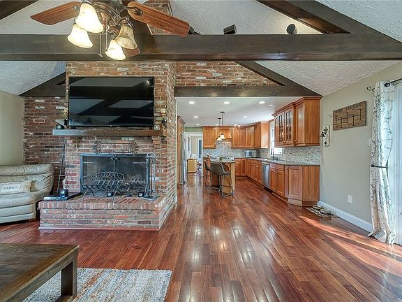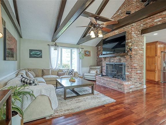 This unique home has so much to offer! The main floor boasts a spacious and inviting layout, featuring vaulted ceilings, exposed beams, and beautiful HW floors throughout. The kitchen is expansive and functional, with ample granite countertop space, cherry cabinets, and modern SS appliances. The main floor offers a versatile bonus room that can serve as an office, den, or fulfill any other purpose you desire! During cold winter nights, cozy up by the fireplace and indulge in its warmth. Upstairs, the master bedroom is spacious and includes a huge walk-in closet and an en suite bathroom! The lower level is finished and features newer luxury LVP flooring, perfect for a game room or kid's playroom. A section of the lower level is currently being used as a home gym! The extra room downstairs is presently serving as a fifth bedroom. Embrace the outdoors on the patio, enjoying the privacy this half-acre lot brings. Backyard is much bigger than fence line - !!