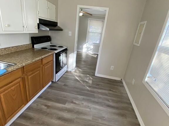 Fenced backyardPlenty of natural lightCovered patioFunctional kitchen