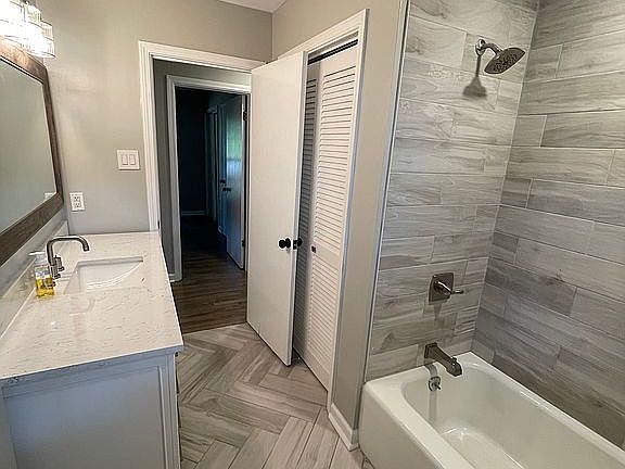 Newly renovated ranch style home with open split floor plan. Entire house has been completely renovated and finished beautifully. Master bedroom is complete with an en suite bathroom located directly down the hall from a well sized laundry room. Walk through the open Kitchen, Dining room and Living room to access the second of two bathrooms and the other three bedrooms. Both bathrooms have been completely renovated and space has been maximized. Real hardwood floors throughout the entire house. The home is nestled in a private two acres conveniently located in southwest Harris County, minutes from Lake Harding. Only home on private road and it has county water and charter internet and cable.