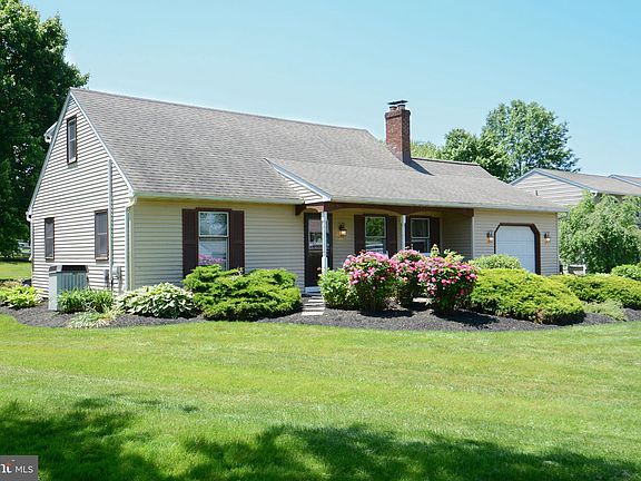 Welcome to 105 Line Drive! This 4 bedroom, 2.5 bath Cape Cod is situated on a stunning half acre property in Telford. Enjoy dinner on the huge paver patio overlooking professionally landscaped gardens. The private backyard provides ample space for raised garden beds, a swing set, outdoor games– you name it. The house has an impressive setback from the road with a long driveway for plenty of parking and chalk art! A covered front porch provides a fabulous space to sit with a cup of coffee in the morning and take in the peace and quiet of living on a suburban cul de sac. Heading through the front door, you will find yourself in the cheery living room with its large windows, hardwood floors, and brick hearth ready for a wood burning stove hook-up. Move right through into the dining room and kitchen, which provide beautiful views of the backyard during meals! The kitchen cabinets are freshly painted and the kitchen awaits your finishing touches. This home conveniently features a main floor primary and secondary bedroom as well as both a full bath and a half bath. The laundry room is also located on the first floor– no lugging your baskets up and down basement steps! The attached garage allows for parking, storage, workshop area, etc. Upstairs you will find two large bedrooms and another full bath! This house has SPACE!!!! The partially finished basement provides even more living space and could be whatever you want it to be– playroom, office, exercise room; just use your imagination! This house is an easy distance to Routes 309, 113, and the PA Turnpike, which makes it a fantastic commuter location. This property is a must see-- schedule your showing now!