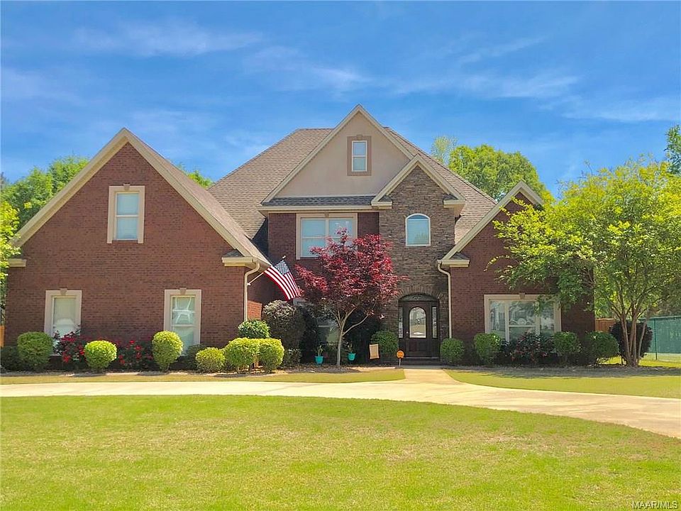 EXQUISITE home with all the bells and whistles in prestigious EAGLE ROCK Subdivision! From the moment you enter through the impressive ARCHED STONE ENTRANCE you will say WOW!! This stunning home has FIVE BEDROOMS, FOUR FULL BATHS & a 1/2 bath too!! There is plenty of room to roam in this apx 3700 LIV SQ FT one owner CUSTOM home. Everyone has their own private space in this very well thought out floor plan. Just off the foyer is a FORMAL DINING ROOM big enough for a large dining table! The GRAND FOYER leads into the center of attention of this home...a HUGE STONE FIREPLACE in this very OPEN GREAT ROOM with an OVERLOOK BALCONY from the upstairs! Any chef would love to cook in this GOURMET KITCHEN with top of the line appliances, TONS OF CABINETS, INDUCTION STOVE, massive SERVING BAR & EXOTIC GRANITE counter tops! The OVERSIZED eat-in kitchen area has lots of natural light and lots of space for a table of 12! The HUGE MASTER SUITE has 2 over-sized HIS/HERS walk-in closets and a DREAMY BATH with JETTED GARDEN TUB, gorgeous TILED SHOWER FOR 2 and double vanity!! It's large enough to have a sitting area too! The extra bedroom downstairs could be an office as well! There are 3 additional bedroom upstairs with a additional study/office area on the balcony. A Jack & Jill walk-through bath is between 2 of the bedrooms. If you need massive amounts of STORAGE, you've found the right home! The walk-out areas from the bedroom to the attic area are floored and insulated! SUPER LOW UTILITIES in home with a CUSTOM DESIGNED 4 ZONED HVAC system! Freshly painted & new carpet makes this home look BETTER THAN NEW! An OVERSIZED GARAGE fits 2 large vehicles easily. The big LAUNDRY ROOM is super efficient with lots of shelving! ENTERTAINING will be a dream on the large COVERED DECK overlooking a large privacy fenced backyard! Enjoy the outdoors at the nearby NEIGHBORHOOD PARK too! Call today to see this home which is the COMPLETE PACKAGE ! Apx 10 mins. to Montgomery. Apx 4 miles to I-65!