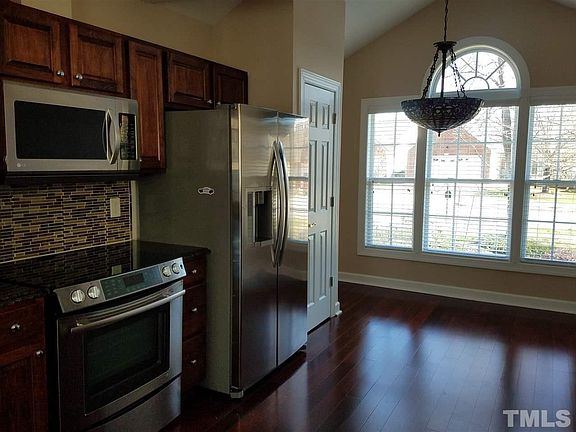 Convenient 2 Car Garage Brick Front home close to RTP, RDU. Shopping & amenities within 4 minutes. Low maintenance living with HOA maintained lawn. Open floor plan with plenty of sunlight, cathedral ceilings & fenced yard. Renovated kitchen with ss appliances, h/w floors, tankless water heater. Newer roof and HVAC. Gas Stove, fireplace. Great Schools. Urban Living - use the sidewalk to shopping.