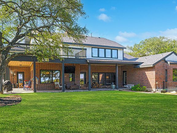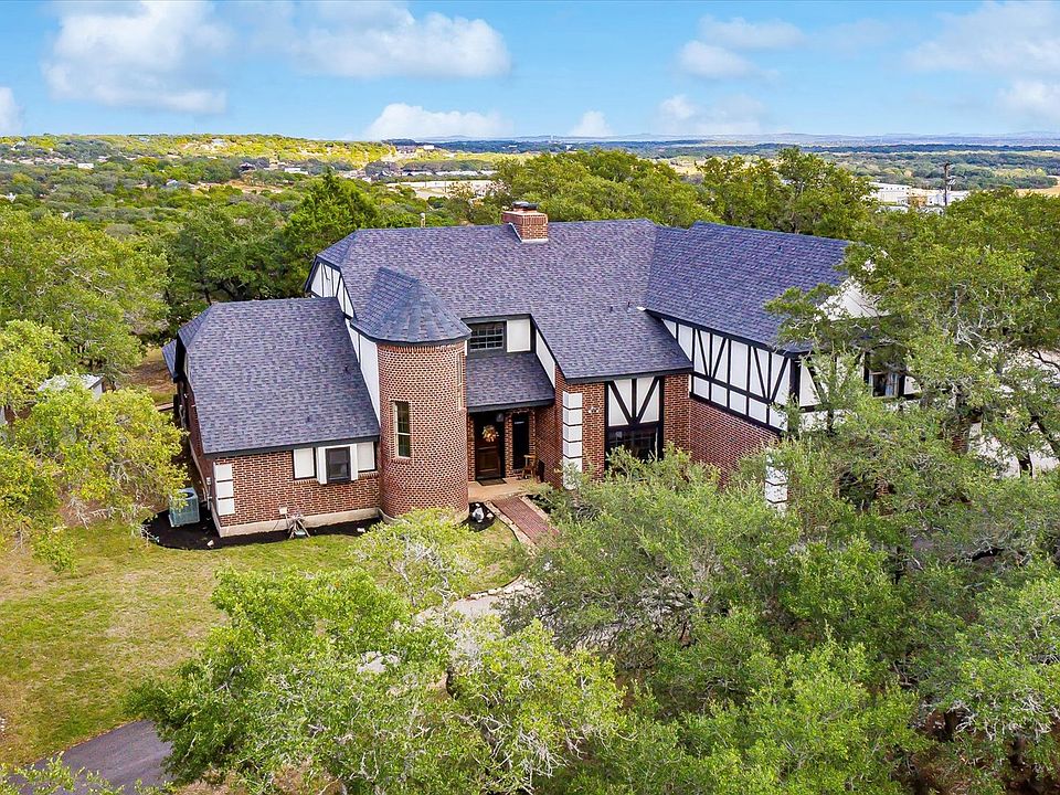 This superb Hill Country estate just minutes from downtown Boerne sits on 5.7+ acres of beautiful hilltop terrain studded with heritage live oaks and mature native trees, and features a stunning custom home, separate guest house, modern two-story metal barn, and sport court, among many other improvements. The sprawling 4,323 square foot, 4 bedroom, 5 bathroom custom home is a must see to appreciate the privacy, views, and features that make it perfect for large family gatherings and entertaining guests. The main level features a great room with soaring two-story ceilings, large fireplace, wet bar, and powder room, and provides an open concept floor plan that includes a formal dining room, large kitchen with black stainless appliances, a hammered copper farmhouse sink, and quartz countertops with adjacent large breakfast room. The primary suite and guest/children's bedroom are also on the main level. The primary suite allows private access to the outdoor covered living space with slate tile floors, and enjoys walk-in closets, and a spa-like bathroom with separate vanities, garden tub and walk-in shower. The second level boasts two additional bedrooms with walk-in closets and adjoining full bathroom, a separate loft-style family room with fireplace, an additional powder room, a media room, and access to a large outdoor deck with long Hill Country views. The charming 600 square foot, recently updated 1 bedroom, 1 bathroom guest house enjoys a full modern kitchen, living room, and laundry room. The recently constructed, 2,400 square foot, climate-controlled two-story metal barn has two craft rooms with closets, an upstairs office and loft storage, and ample open space for a workshop, RV parking and equipment storage. The 1,500 square foot sport court can be utilized in a multitude of ways. The estate has its own private water well with storage tank and insulated pump house. This property offers so many possibilities for the future owner. Come see it today!