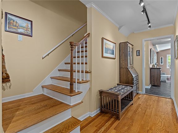 Stunning 6 Bedroom, 3-1/2 Bath Traditional Home with Mid-Century Modern inspired architectural details. If you crave a unique home for entertaining, this could be "The One"! The foyer opens to a spacious light-filled living & dining area that flows into a gorgeous custom kitchen with a huge island, six-top gas stove, dual sinks, bar & wine fridge. Large windows and French doors surround the open dining space for a lovely view of the private wooded backyard. The spacious family room has a half bath and leads to a screened-in three-season room for additional gathering space. Oversized main bedroom with beautifully remodeled ensuite bath, 5 spacious bedrooms, 2 full baths, cedar closet, and storage complete the upper level. Finished game room, laundry area, workbench, ample storage, an EV-ready two-car garage. Mature landscaping filled with flowering perennials that bloom year-round make this home one of a kind! Conveniently located 1-mile from downtown Beaver.
