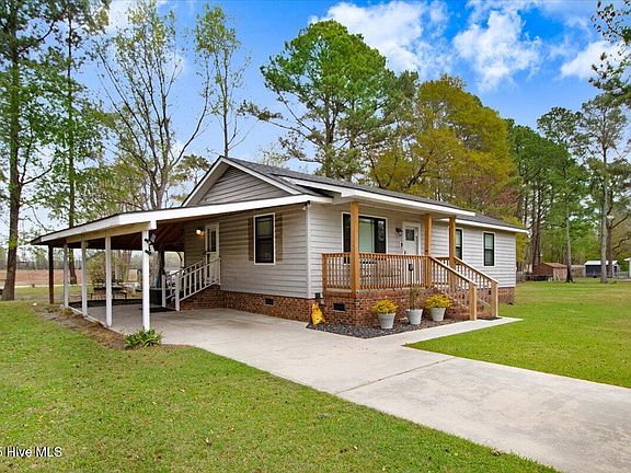 Beautifully renovated 3 bed 2 bath home just outside the city limits of the quaint little town of Beulaville! This listing includes 2 adjacent lots together equaling approximately .65 acres. Convenient to Jacksonville, Richlands, Kenansville and Wallace. The original wall separating the kitchen and living room was removed to gain an open floor concept and the remodeling consists of new cabinetry, backsplash, counter tops, lighting, accent walls, vinyl flooring and the perfectly place island with a butcher block wood counter top! Other renovations and additions include the master bathroom with beautiful tile work in the shower, the installation of ReliaBilt double pane windows rated for Cat 5 hurricane winds, all new wood on the front porch and the extension of the carport to the covered back patio area that has privacy curtains so you can relax and enjoy your outdoor space! New septic lines have been installed as well as a french drain system to allow for better yard drainage. This home has been very well kept so scheduled your showing to come see it today before it is off the market!